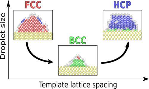 Julien Lam and James F. Lutsko, "Lattice induced crystallization of nanodroplets: the role of finite-size effects and substrate properties in controlling polymorphism", Nanoscale, 10, 4921 (2018) http://jimlutsko.github.io/files/Lam_Lutsko_Nanoscale_2018.pdf